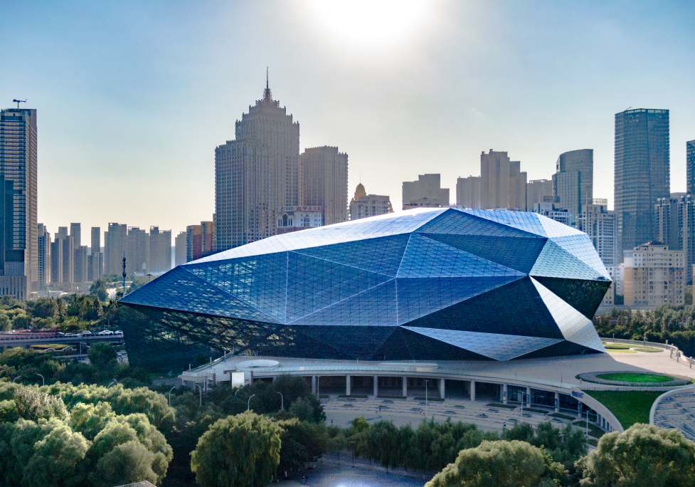 "盛京大劇院坐落渾河河畔,緊鄰繁華金廊,地理位置優越,造型別致新穎,從空中俯瞰整個劇院酷似一顆鉆石,是沈陽市的標志性文化設施之一。"